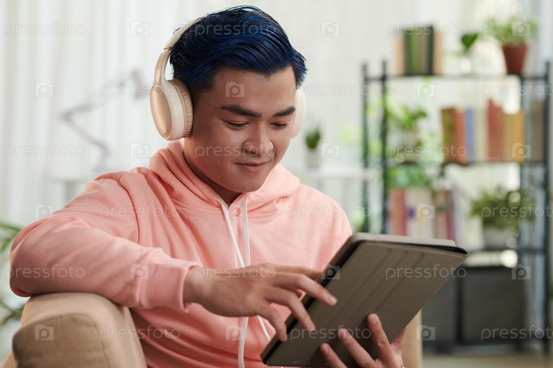 Человек, смотрящий шоу на планшете