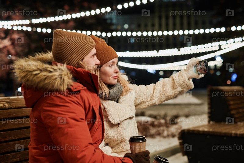 Молодая пара делает селфи