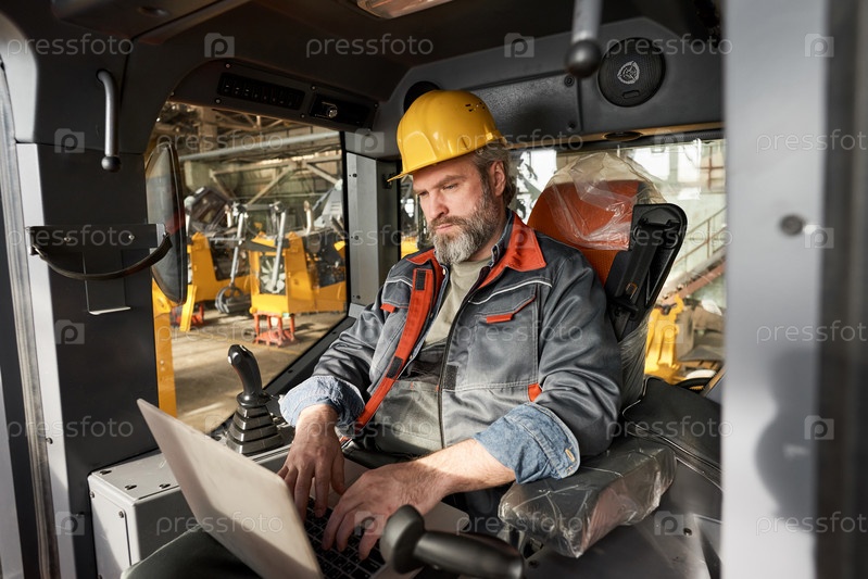 Оператор управляет машиной с помощью ноутбука