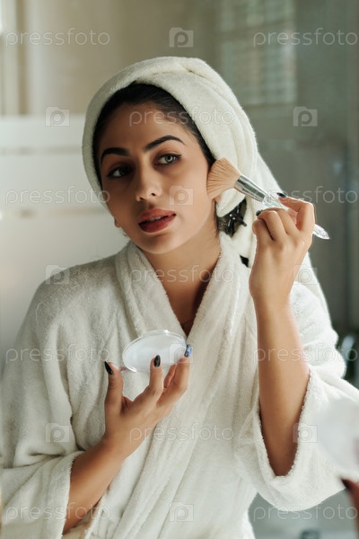 Молодая женщина наносит макияж