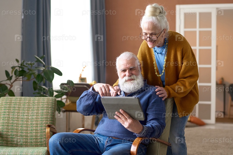 Дедушка и бабушка проводят видеозвонки на планшетном компьютере