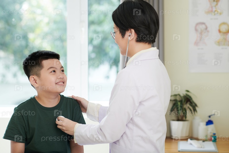 Врач осматривает мальчика в больнице