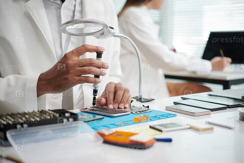 Техник восстанавливает сломанный смартфон