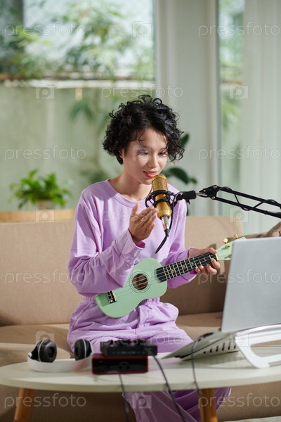 Подростковая девушка в потоковом режиме сама поет