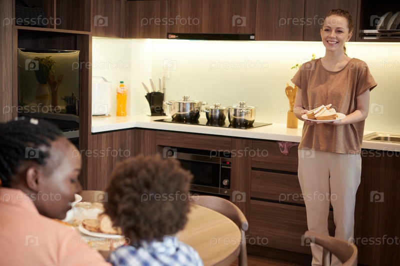 Женщина, приносящая бутерброды за завтрак