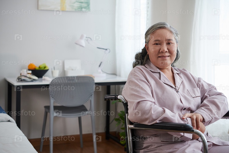 Пожилая женщина, сидящая в инвалидном кресле
