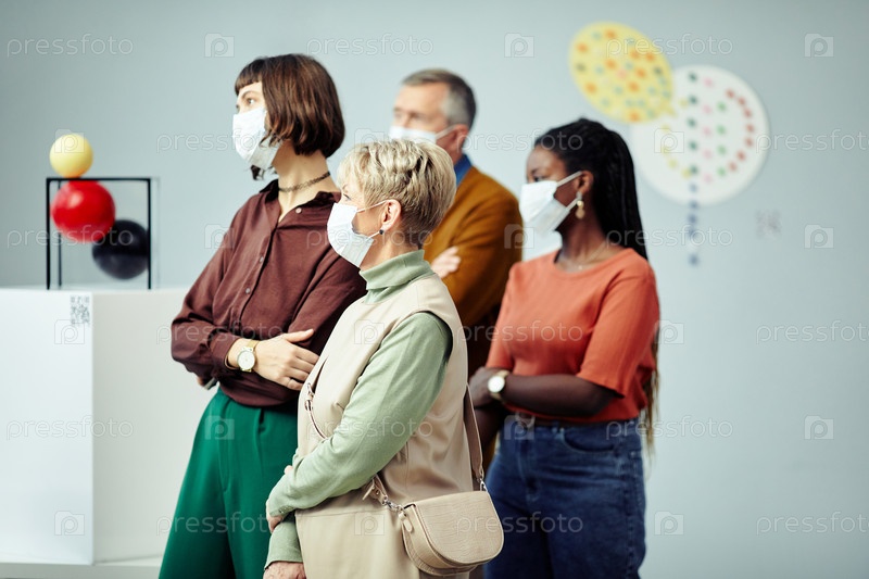 Посетители галереи в масках Art Gallery Visitors In Masks