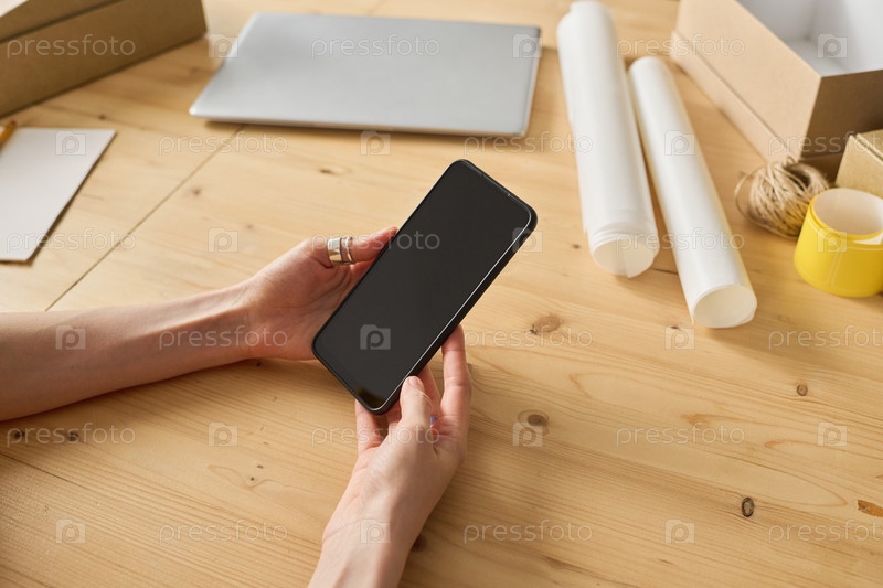 Девушка, использующая мобильный телефон для проверки онлайн-заказов