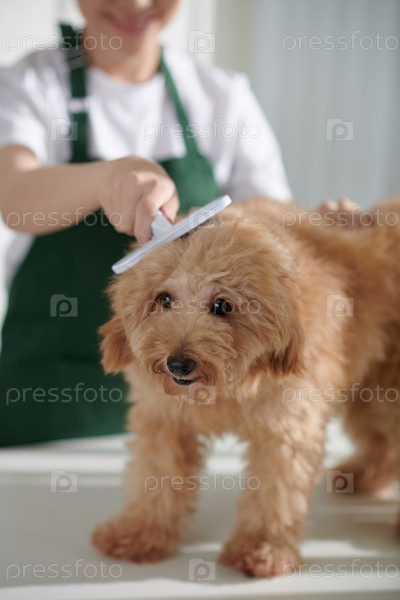 Груммер чистит маленькую собаку