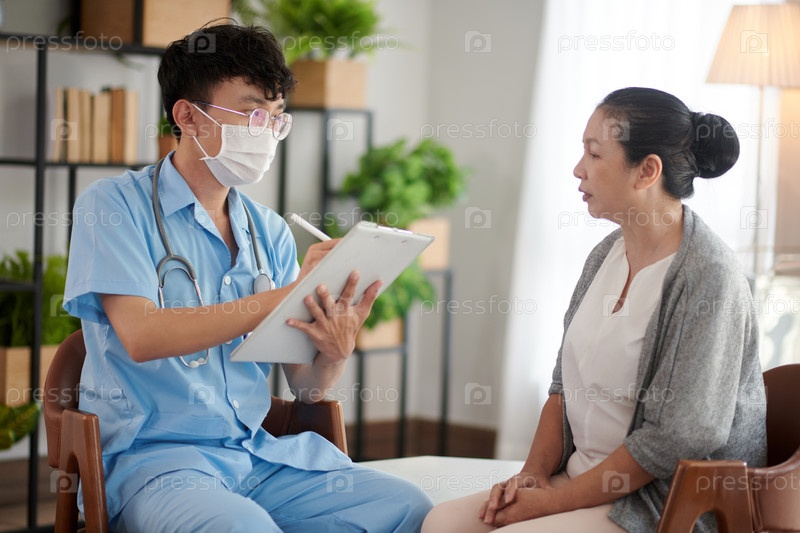 Врач разговаривает с пациентом дома престарелых