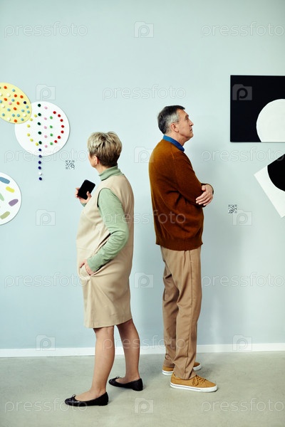 Зрелый мужчина и женщина в художественной галерее