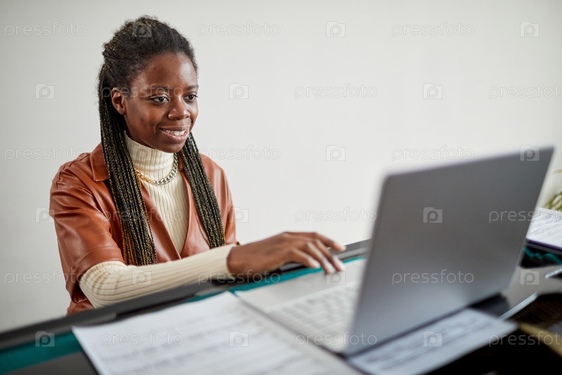 Женщина учится играть на фортепиано онлайн