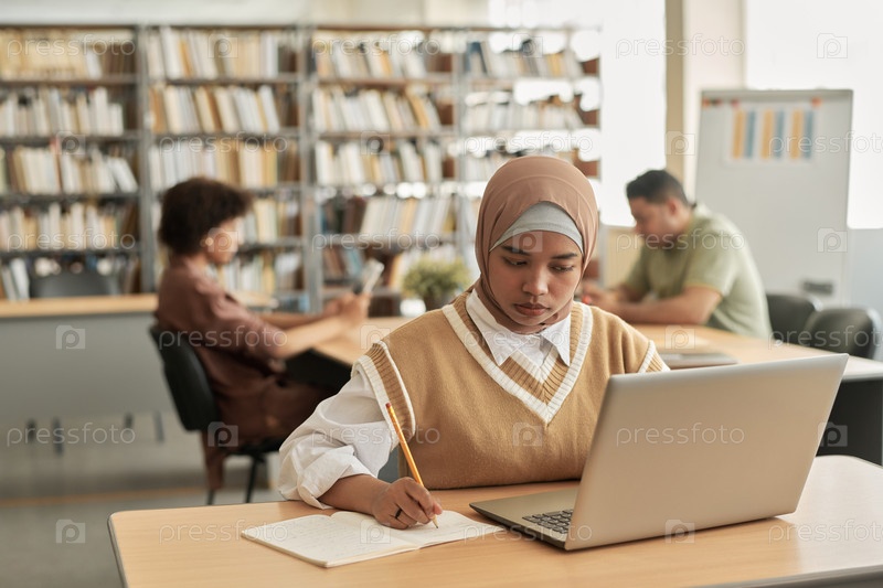 Мусульманский студент использует ноутбук в учебе