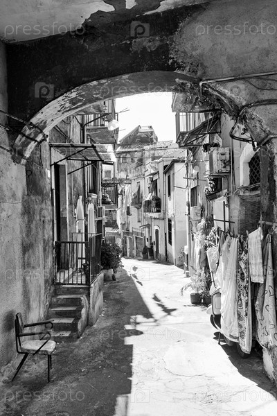 Улица с полуразрушенными домами в Катании