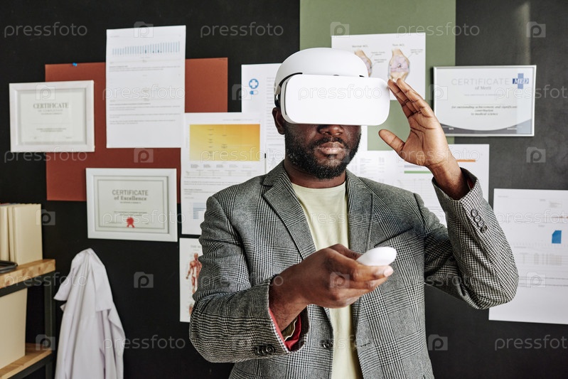 Человек в очках VR на виртуальной встрече