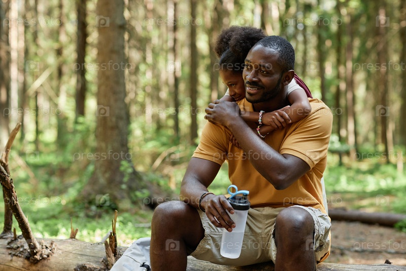 Папа отдыхает с ребенком после похода