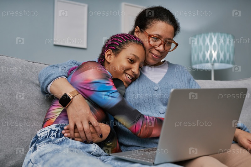 Мать и дочь вместе используют ноутбук