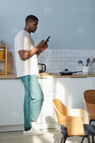 Молодой человек использует смартфон дома