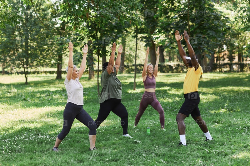 Пожилые женщины наслаждаются спортивными тренировками на открытом воздухе в парке