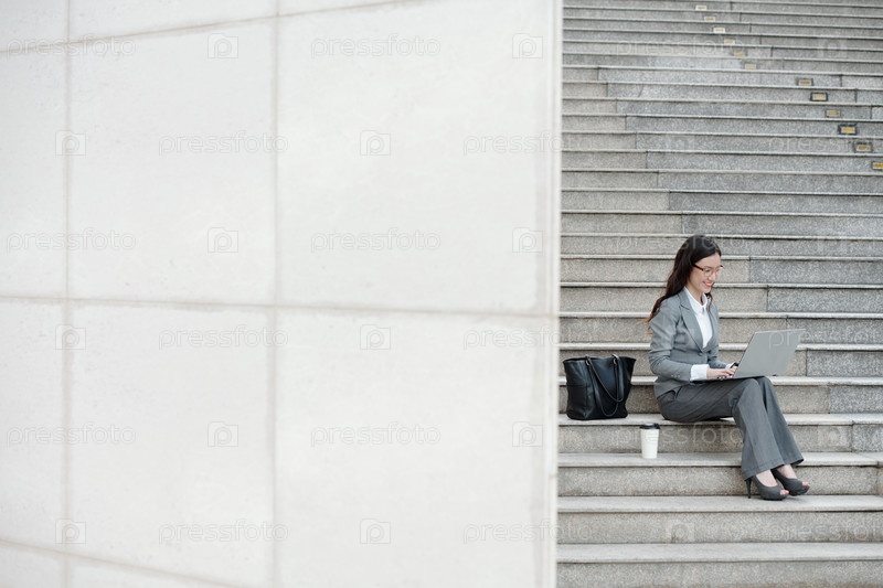 Позитивный предприниматель, работающий на ноутбуке