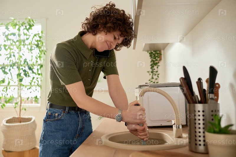 Домашняя хозяйка звонит ремонтному сервису, чтобы исправить блокировку