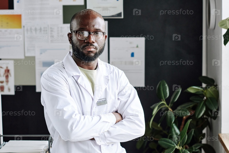 Африканский врач общей практики, стоящий в офисе