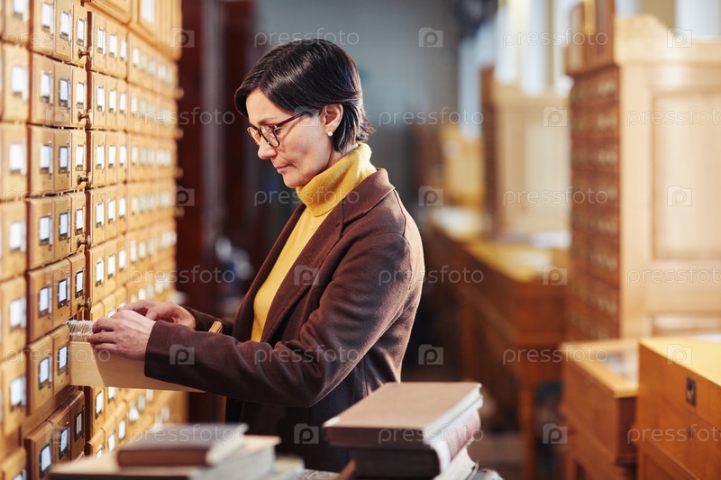 Библиотекарь, работающая с каталогом