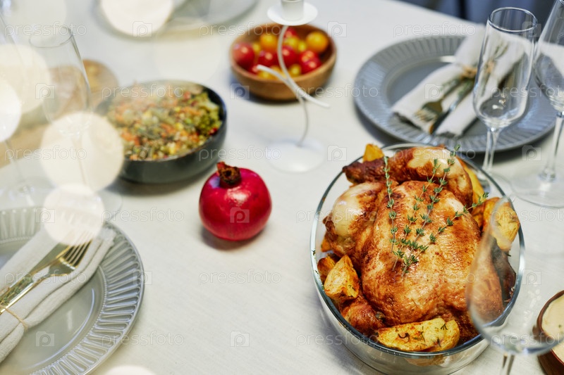 Аппетитное жареное птичье мясо с картофелем и тимьяном наверху