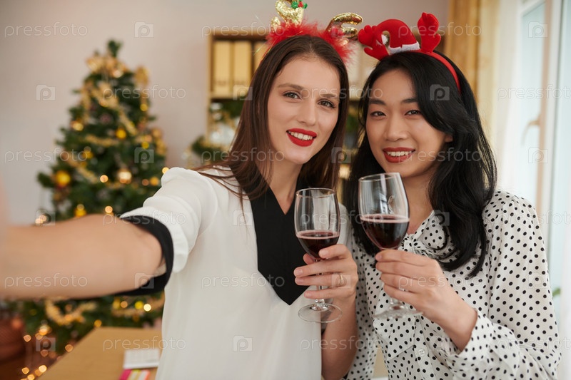 Женщины-предприниматели на рождественской вечеринке в офисе