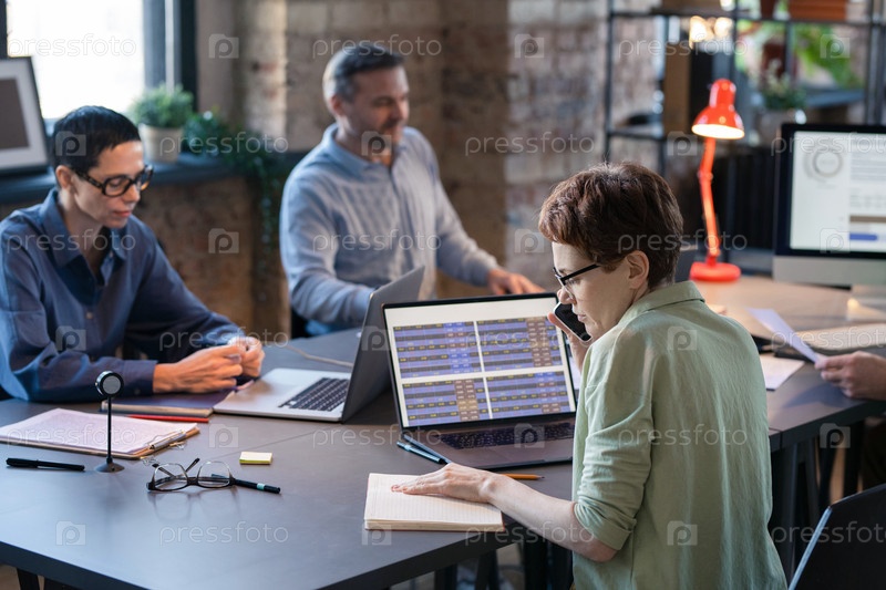 Деловая женщина, работающая в офисе с коллегами