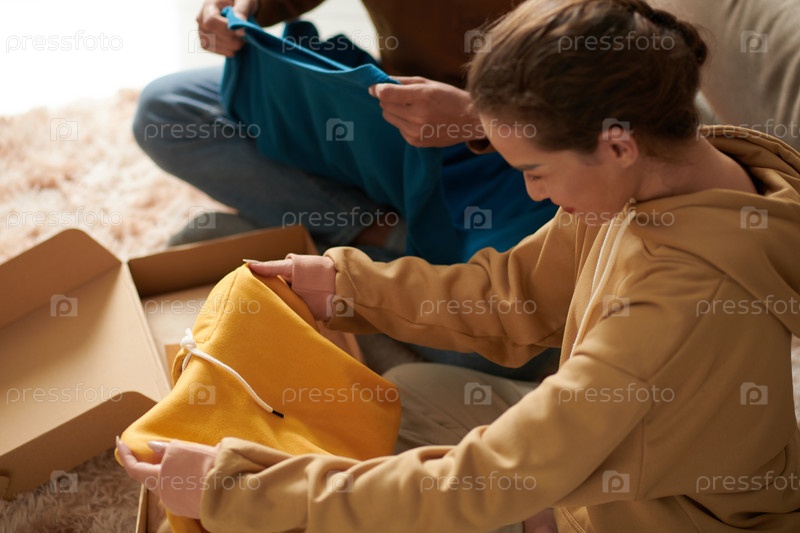 Женщина, распаковывающая худи