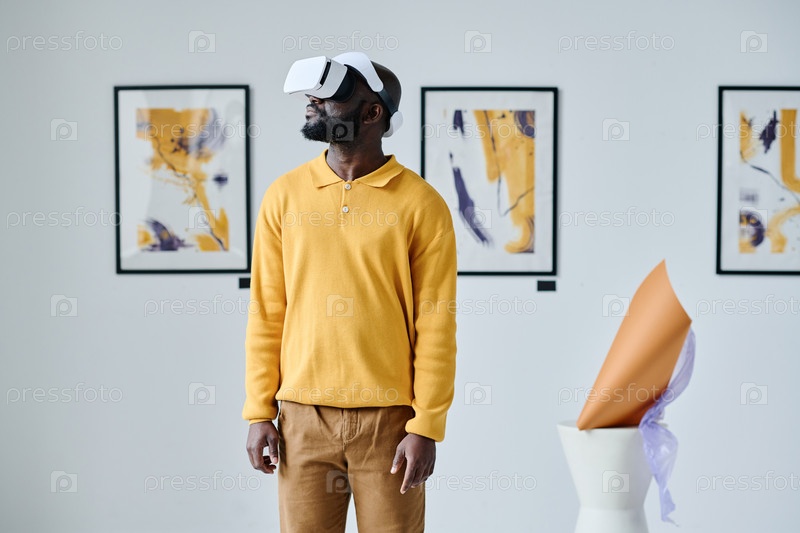 Человек в очках виртуальной реальности на галерее