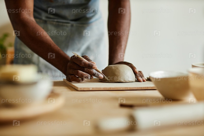 Мужской художник создает ручную керамическую миску в уютной студии гончарного дела