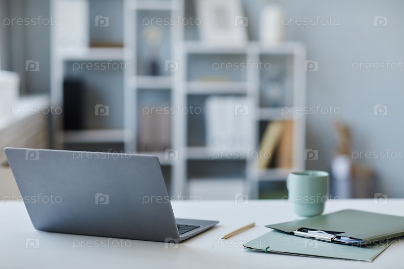 Фонное изображение открытого ноутбука на столе в офисе