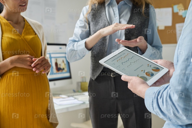 Бизнесмены обсуждают отчет в команде