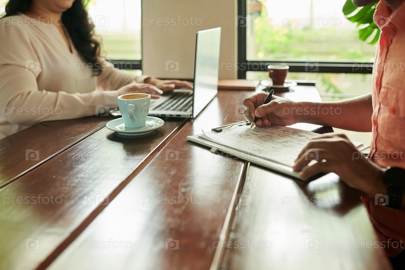 Бизнесмен, рисующий общий график идей