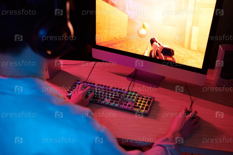 Мальчик играет в видеоигру с шутером от первого лица