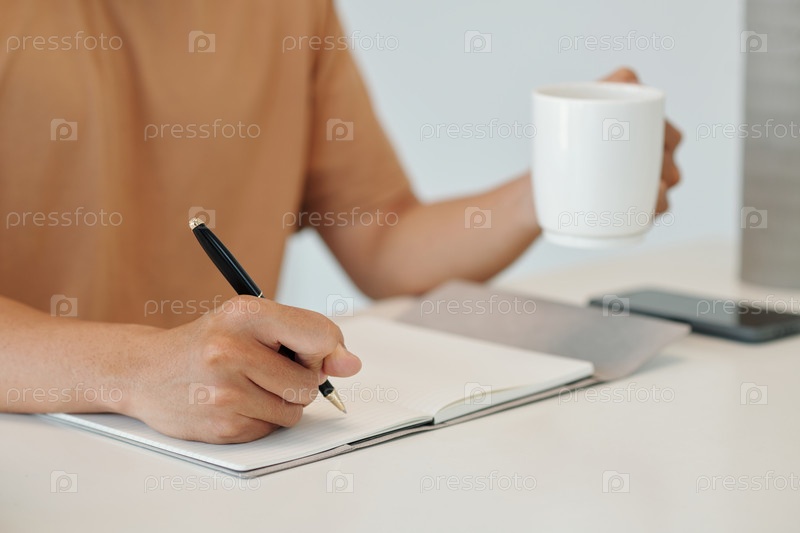 Молодой человек пишет планы на день