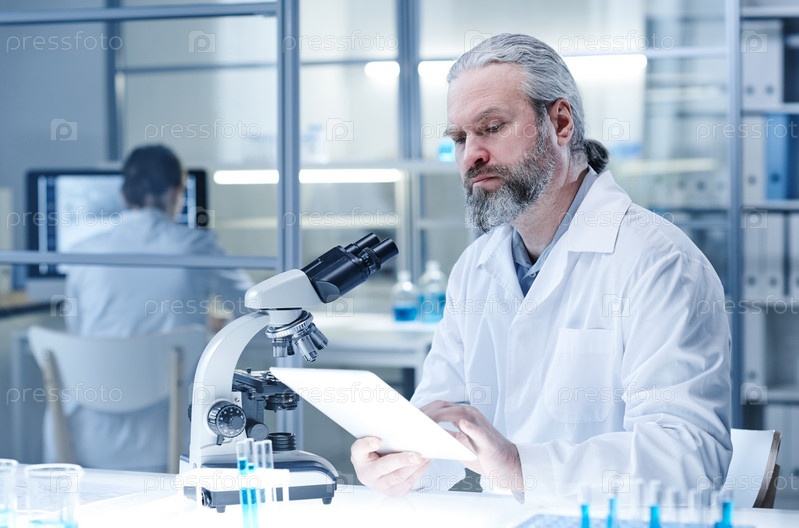 Мужчина, работающий на планшетном компьютере в лаборатории
