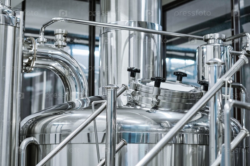 Большой бак с пивом в бутылочном заводе