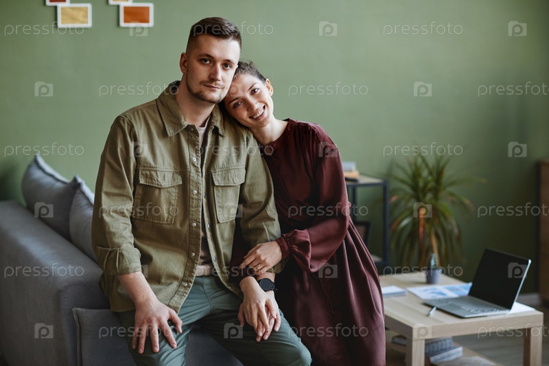 Портрет молодой пары дома