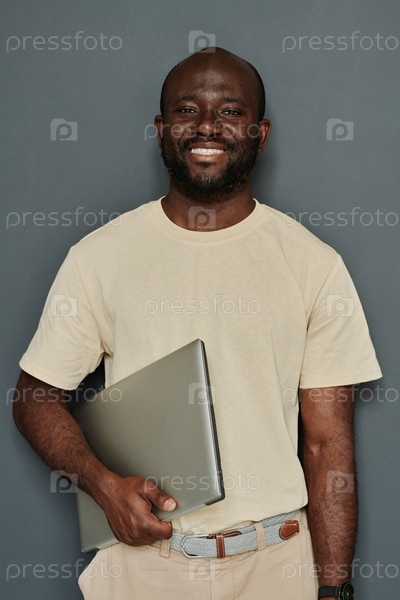 Африканский молодой человек с ноутбуком