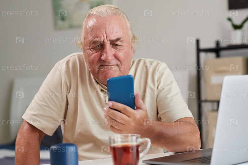 Старший мужчина видео звонит семье