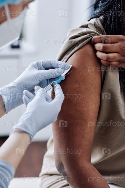 Пациент получает прививку в плече