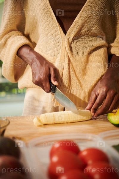 Женщина, режущая бананы