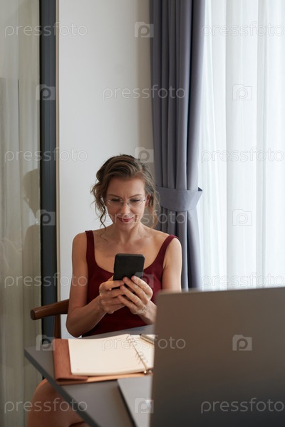 Деловая женщина читает текстовые сообщения