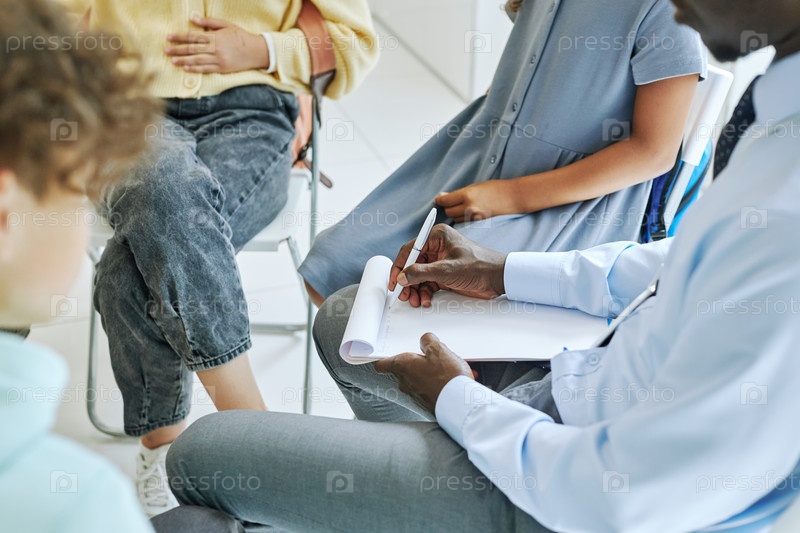 Терапевт делает заметки на сессии группы поддержки