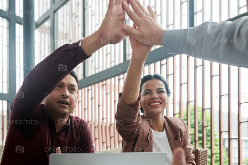 Бизнес-команда, делающая высокую пятерку