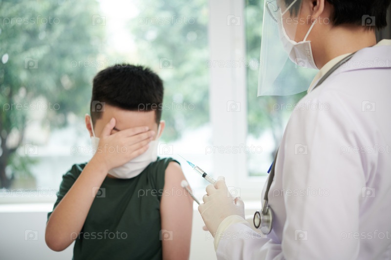 Испуганный ребенок дает прививку в больнице