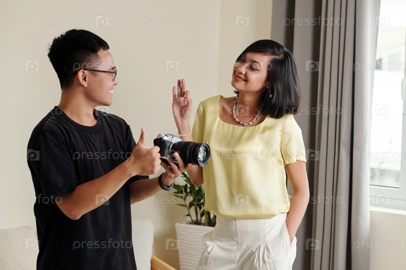 Фотограф и модель обсуждают фотографии